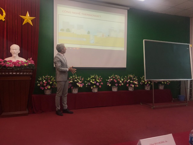 2018. október 12 és 16-a között Ho Si Minh-városba folytatott tárgyalásokat a magyar Thermowatt Kft. Ennek első állomásaként a hazai cég ügyvezető igazgatója, Kiss Pál úr a Ho Si Minh-városi Technológiai és Ipari Egyetemen (IUH) tartott szakmai előadást az intézmény hallgatói számára, amit dr. Baloghdi Tibor főkonzul nyitott meg. Ezt megelőzően a vietnámi intézmény és a magyar cég az egyetem új kampuszán megvalósítandó Thermowatt technológia részleteiről egyeztetett. A megbeszéléseken részt vett Nguyen Thien Tue úr, az IUH rektora, valamint Phan Hong Hai és Nguyen Chi Hieu rektor helyettes urak. A IUH vezetősége felelevenítette a 2018. májusban szervezett magyarországi látogatását, amely során Budapesten és Szegeden is lehetősége nyílt megtekinteni a Thermowatt Kft. referenciáit. Az IUH továbbra is elkötelezett azzal kapcsolatban, hogy Vietnámban előszőr az intézmény új kampuszán alkalmazzák a magyar cég technológiáját.